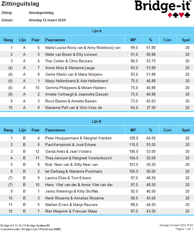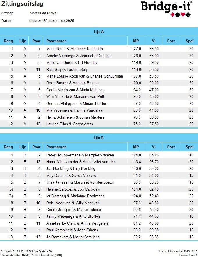 Uitslag Kerstdrive 16 december 2025