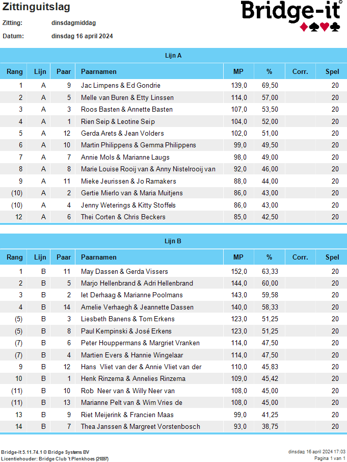 Uitslag Paasdrive 15 april 2025