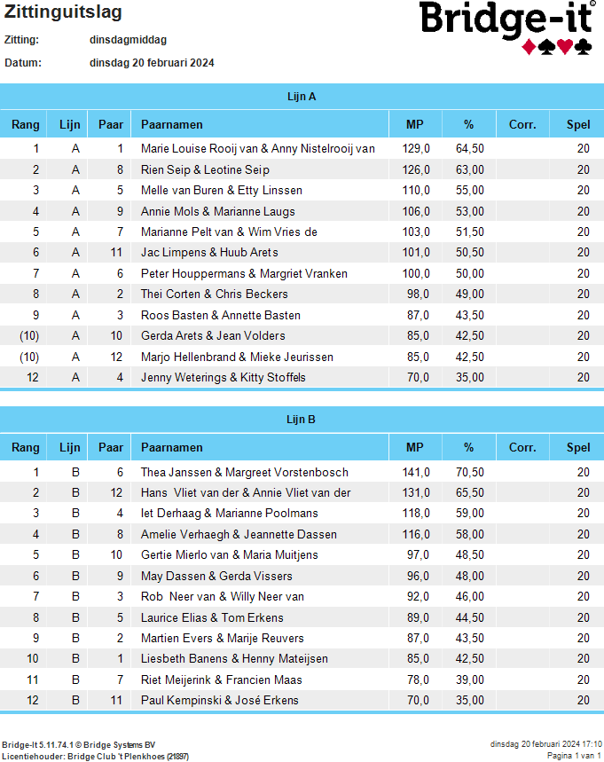 Uitslag carnavalsdrive 2024.